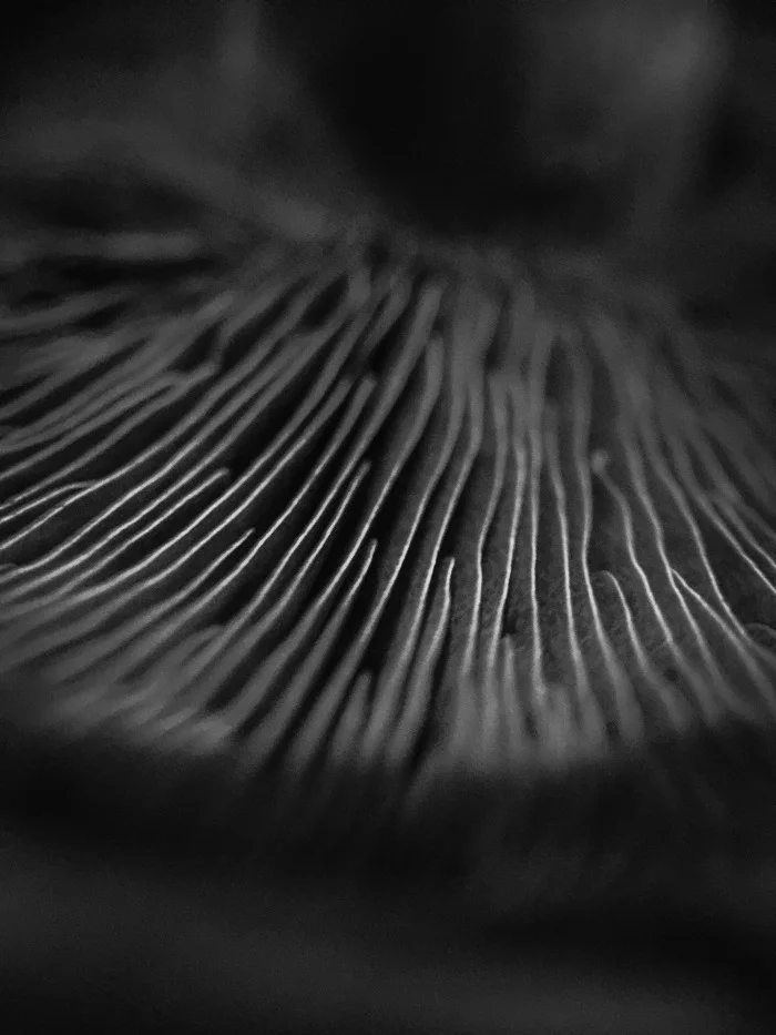I’m fascinated with how small things mimic larger patterns. From this perspective, the gills of this mushroom resemble The Wave in Coyote Buttes, Utah. I’m currently examining the hidden side of things, the underside. And I’m fascinated by the patterns exhibited in Kingdom Fungi.